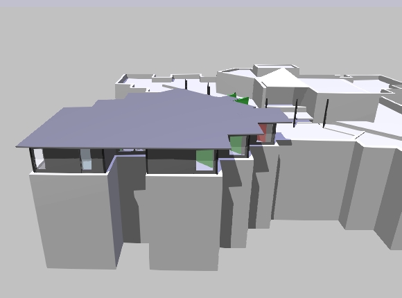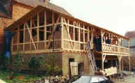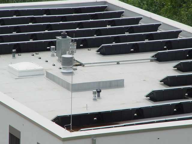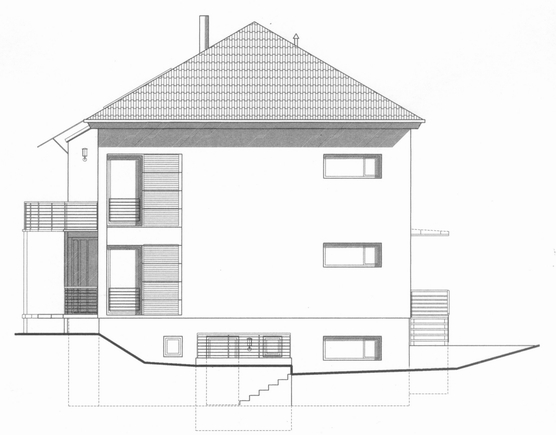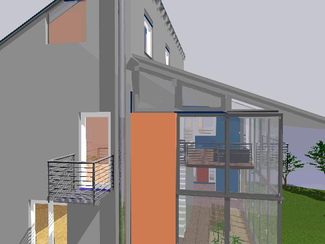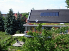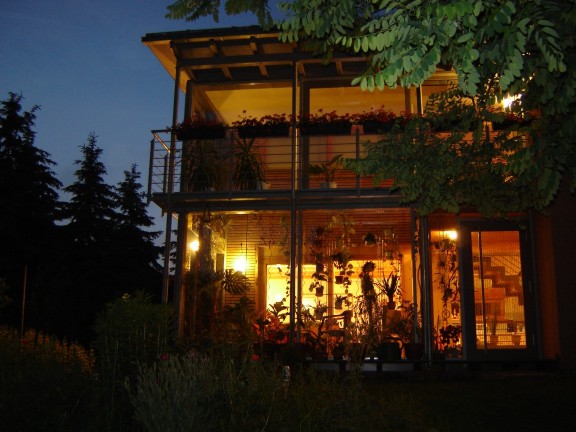 Anbau mit flachgeneigtem Gründach, nach Süden 1.25 m Dachüberstand = sommerlicher Wärmeschutz |