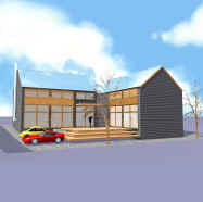 Architektur Anerkennung Thüringer Holzbaupreis 2007 Neubau Einfamilienhaus, zweigeschossiger Hauptkörper mit einem Sattel-Kaltdach, Holzrahmenbau mit Zellulose- und Holzfaserdämmung, Kellergeschoss aus Leichtbeton; |